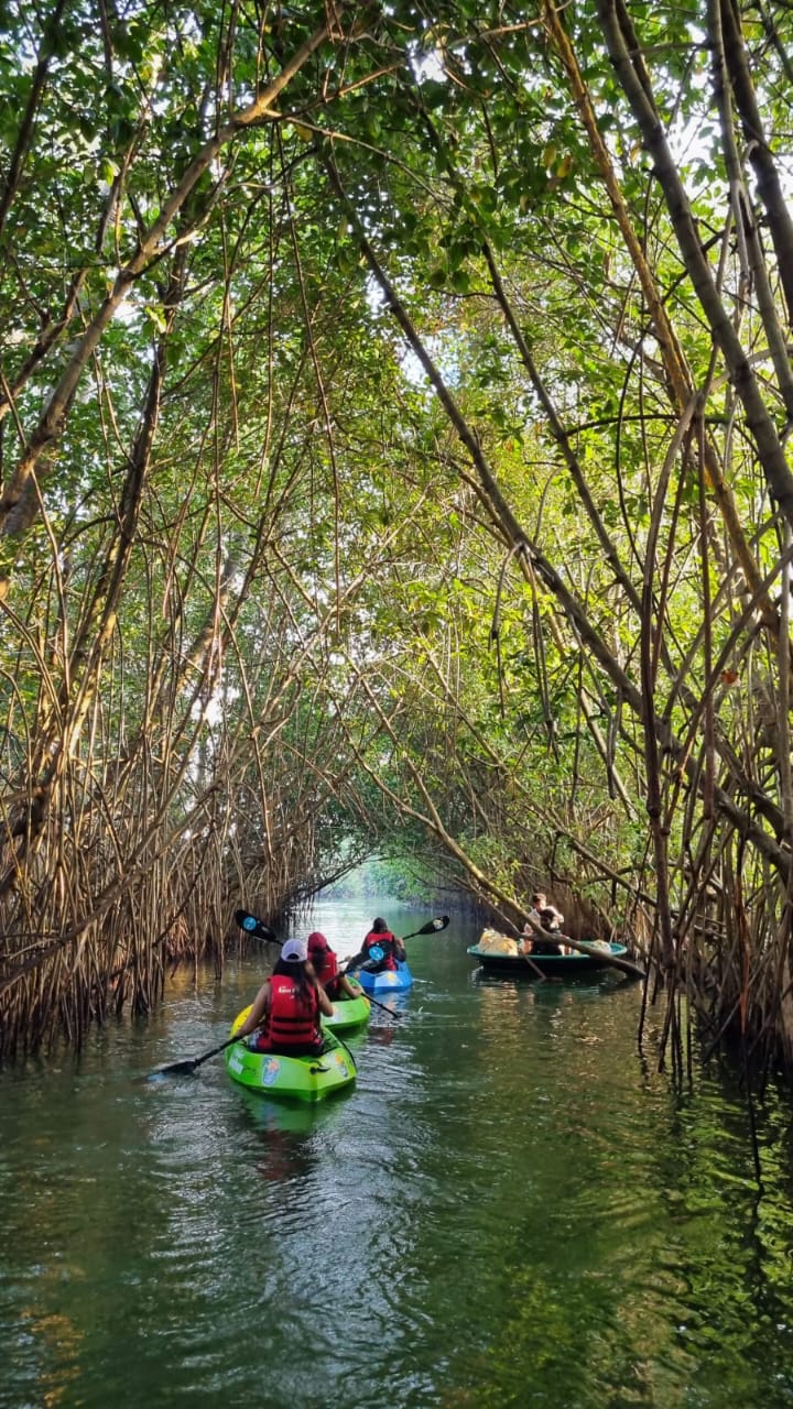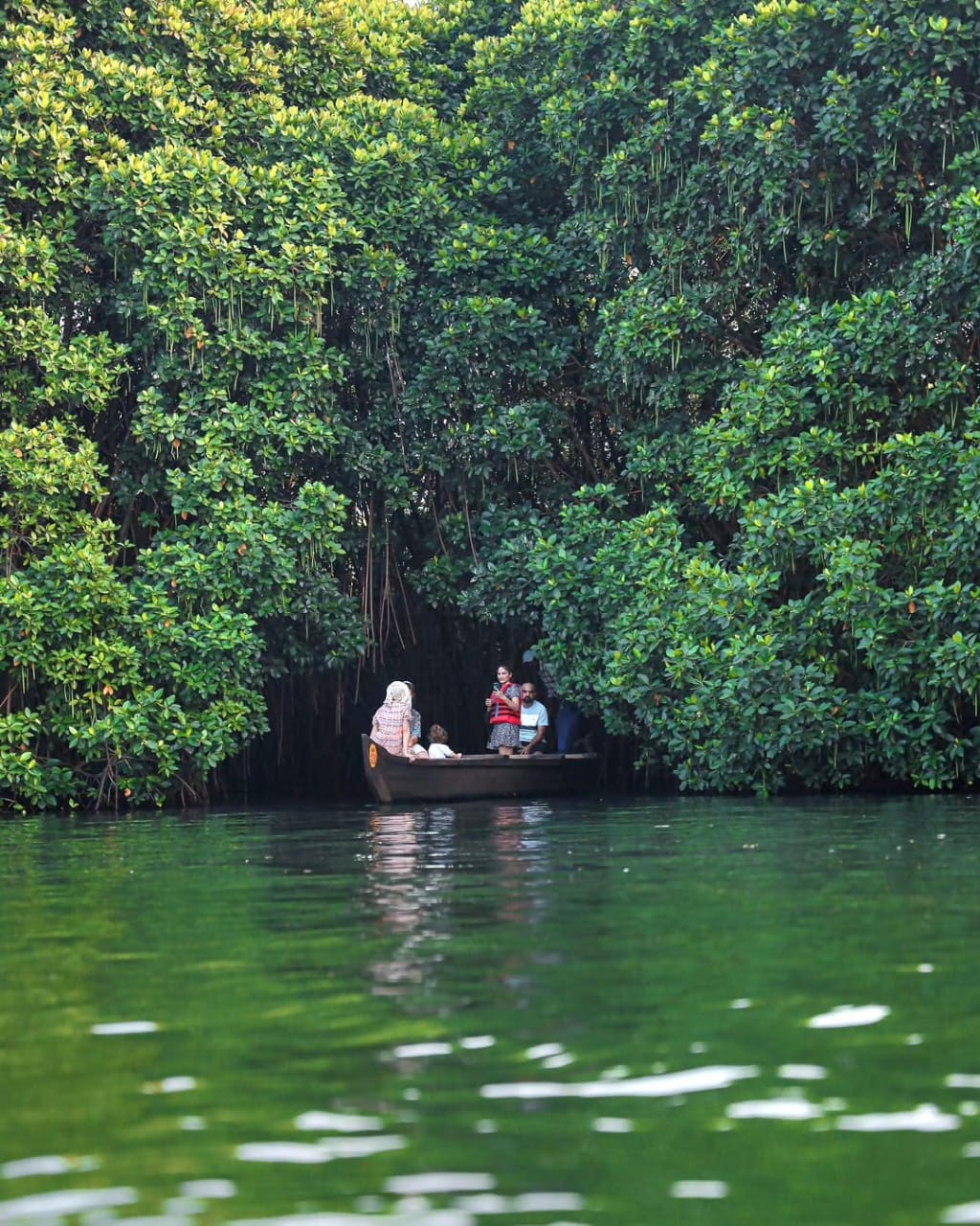 The Mangrove Tunnel: Paddle through the longest mangrove tunnel in Kerala—a natural green cathedral overhead.